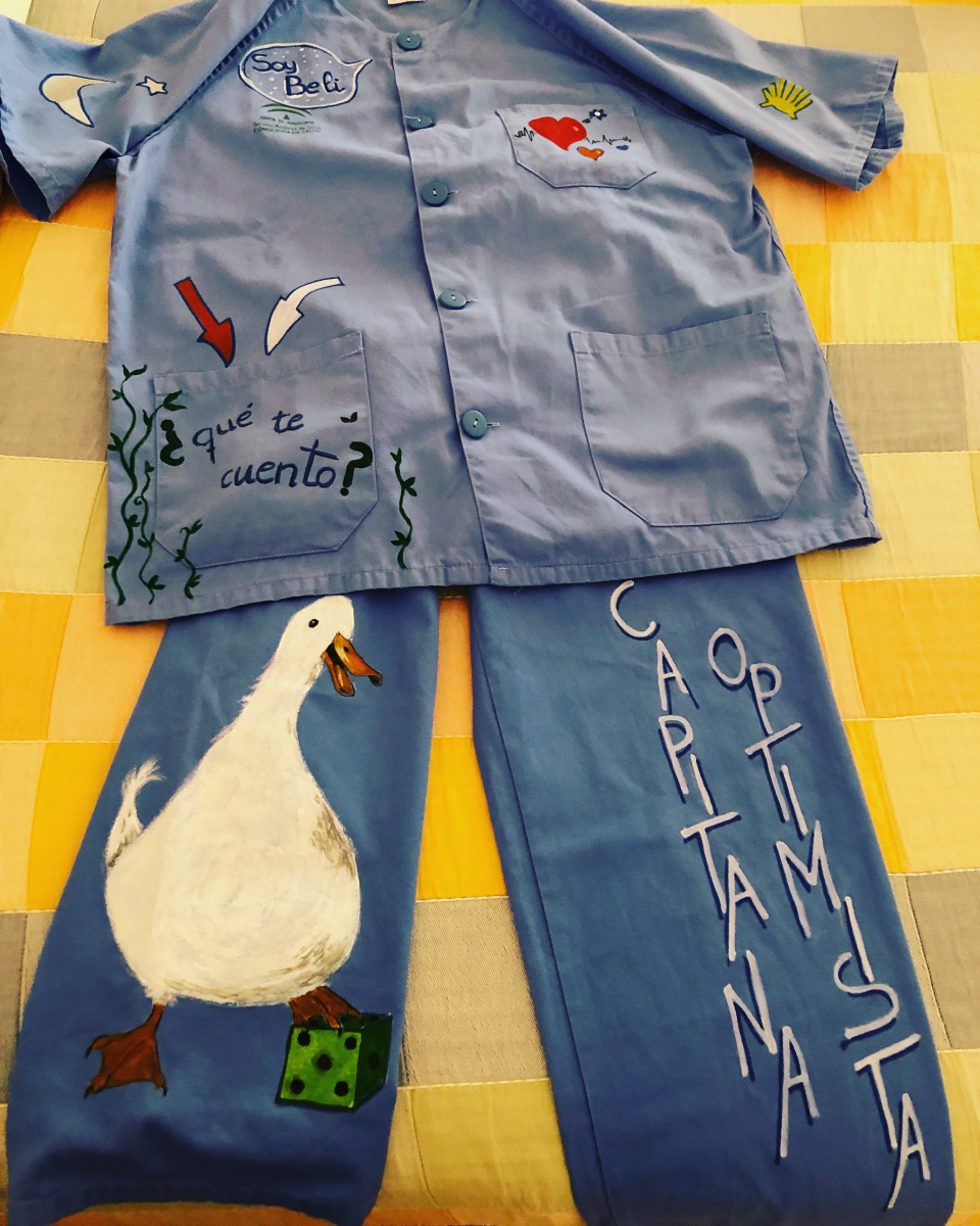 Pijama clínico pintado a mano. Realizado por encargo